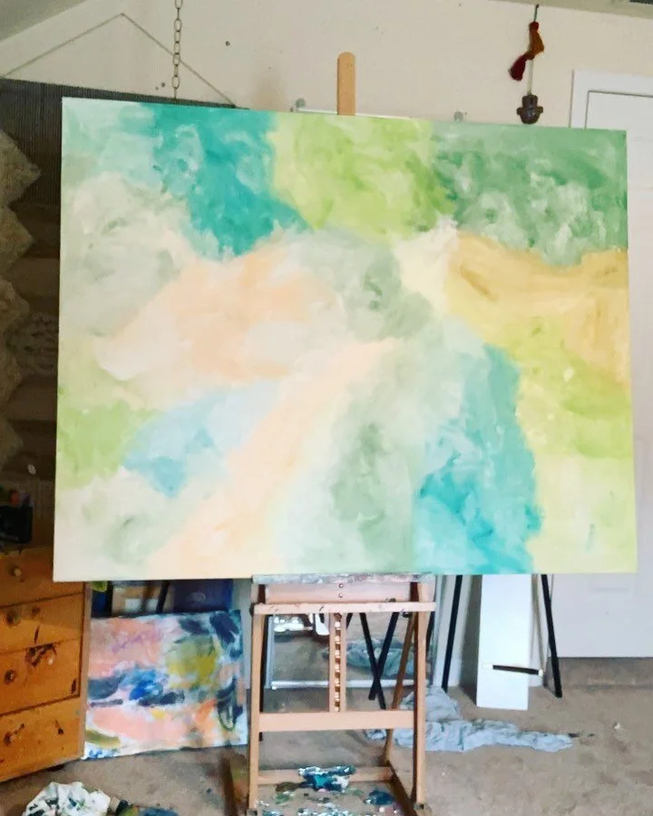 I would define my painting style as abstract expressionist. When I start a painting, I do not have a plan or even a color in mind; I walk into it as a free-spirited creator and just start. I do take time and give much credit to my spiritual rituals before I begin. I allow a trance-like state of Being to be a conduit for channeling and invite unknown energies beyond physical reality to open into receiving mode.